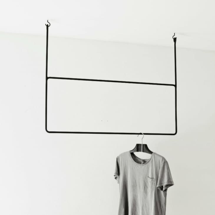 Craftwerk 11 Hanging Coat Rack 100 Cm Wooden Clothes Rail Ceiling Mounting Beech With Cotton Rope White Amazon De Home Kitchen from m.media-amazon.com These hanging coat racks are suspended from the ceiling allowing them to sway, rotate, and best of all, keep your floor space free. 2 locate the ceiling joist or joists that you will need to mount the pulleys using an electronic stud finder. The rack and folding table could be collapsible or foldable against the wall when not in use. Set up an area with a drop cloth or cardboard to protect the ground before painting. Garrett walks you through the steps he took to build our overhead clothes airer in the video below. I recommend using spray paint, rather than brushing the paint on. You can always attach a clothing rod to your wall, but you can also buy clothing rods that hang from the ceiling if you want to take advantage of vertical space. Hang a shelf near the ceiling.